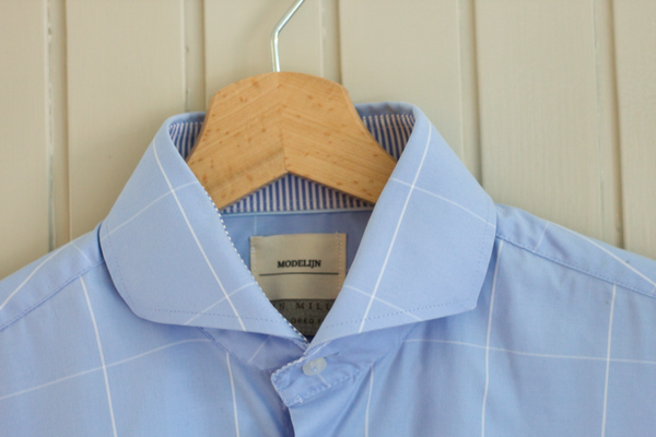 Lichtblauwe blouse met subtiele ruitstructuur